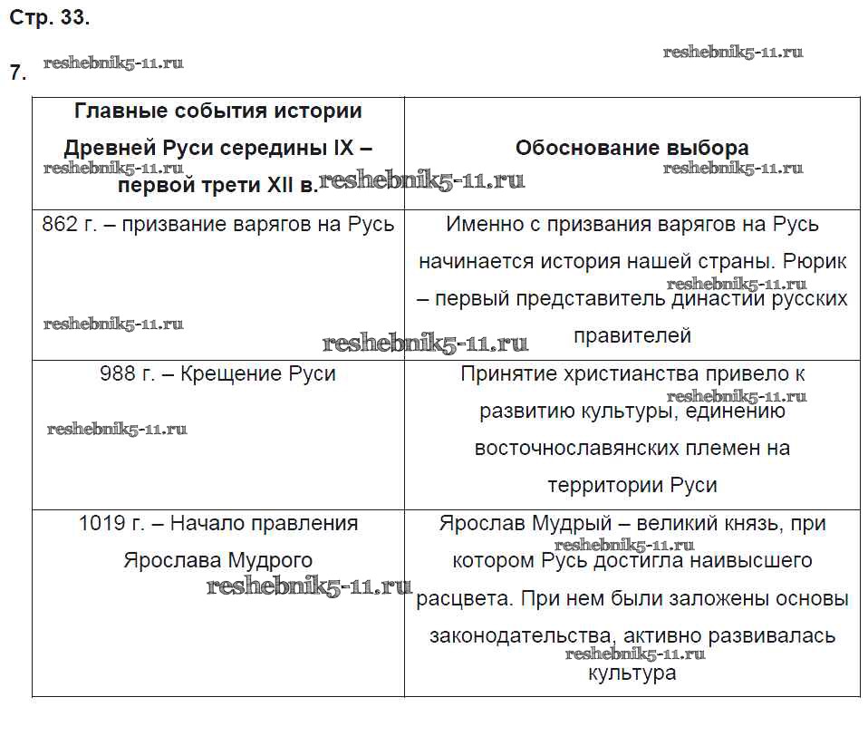 Готовая домашняя работа с ответами по Истории за 6 класс Баранов Рабочая тетрадь Алгоритм успеха Вентана-граф 2017 ФГОС - Страницы тетради 33