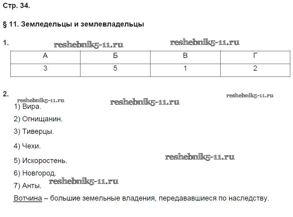 Готовая домашняя работа с ответами по Истории за 6 класс Баранов Рабочая тетрадь Алгоритм успеха Вентана-граф 2017 ФГОС - Страницы тетради 34