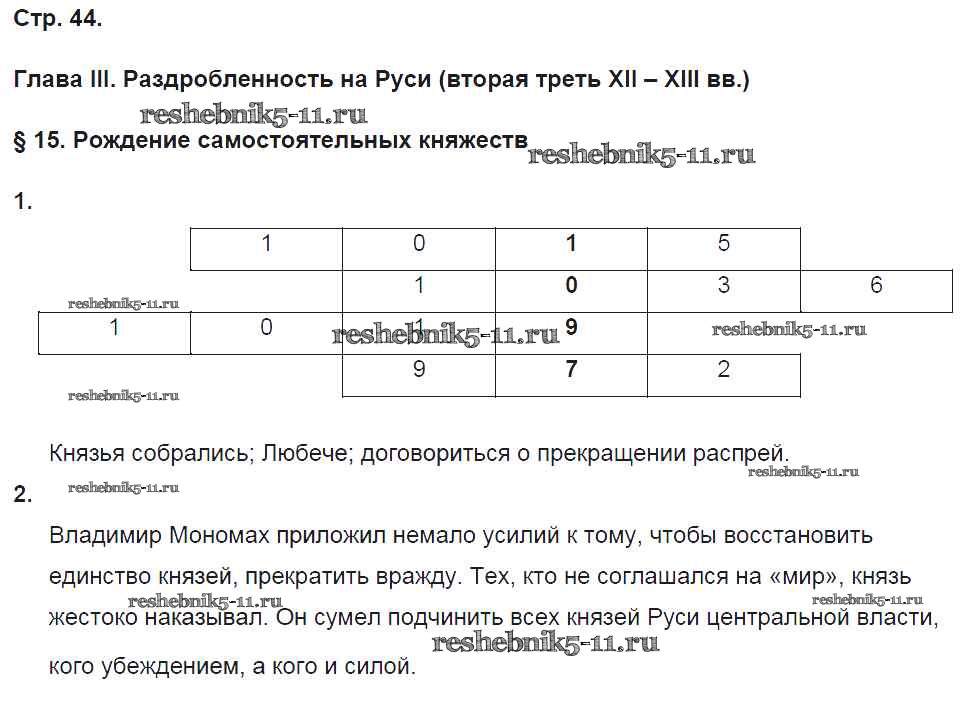 Готовая домашняя работа с ответами по Истории за 6 класс Баранов Рабочая тетрадь Алгоритм успеха Вентана-граф 2017 ФГОС - Страницы тетради 44