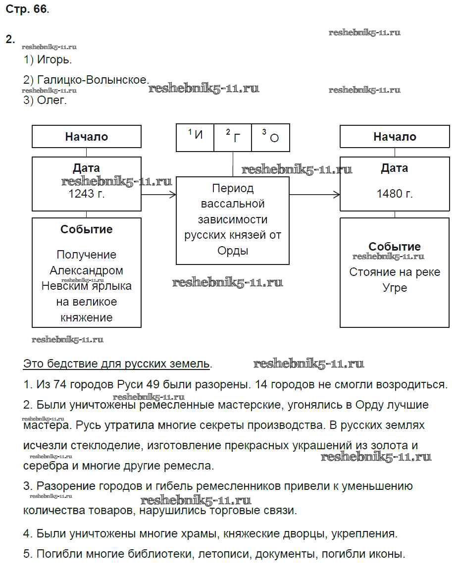 Готовая домашняя работа с ответами по Истории за 6 класс Баранов Рабочая тетрадь Алгоритм успеха Вентана-граф 2017 ФГОС - Страницы тетради 66