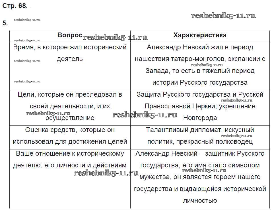Готовая домашняя работа с ответами по Истории за 6 класс Баранов Рабочая тетрадь Алгоритм успеха Вентана-граф 2017 ФГОС - Страницы тетради 68