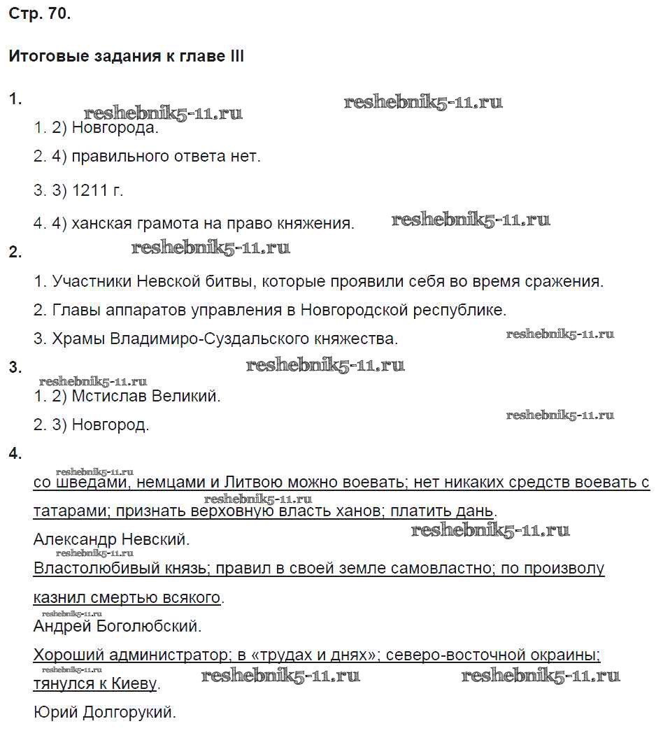 Готовая домашняя работа с ответами по Истории за 6 класс Баранов Рабочая тетрадь Алгоритм успеха Вентана-граф 2017 ФГОС - Страницы тетради 70