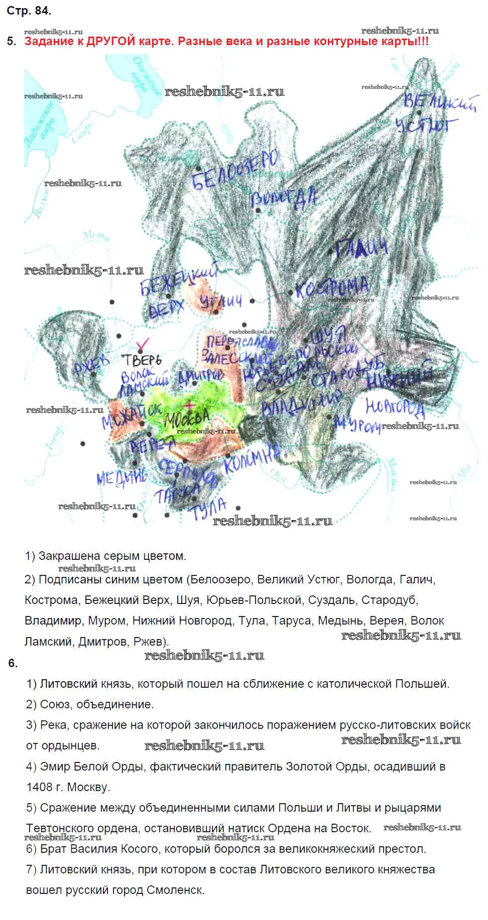 Готовая домашняя работа с ответами по Истории за 6 класс Баранов Рабочая тетрадь Алгоритм успеха Вентана-граф 2017 ФГОС - Страницы тетради 84