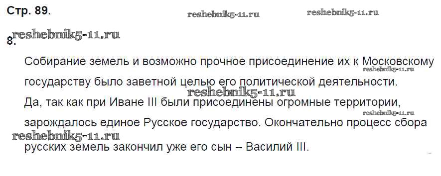 Готовая домашняя работа с ответами по Истории за 6 класс Баранов Рабочая тетрадь Алгоритм успеха Вентана-граф 2017 ФГОС - Страницы тетради 89