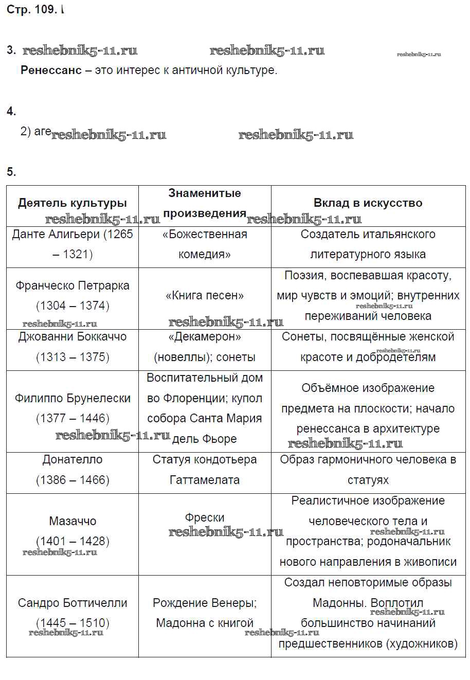 Готовая домашняя работа с ответами по Истории за 6 класс Баранов Рабочая тетрадь Алгоритм успеха Вентана-граф 2017 ФГОС - Страницы 109