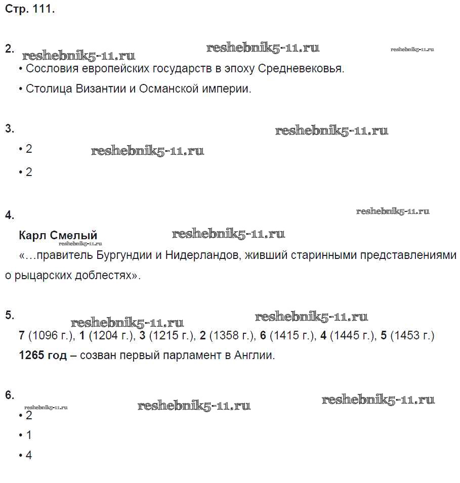 Готовая домашняя работа с ответами по Истории за 6 класс Баранов Рабочая тетрадь Алгоритм успеха Вентана-граф 2017 ФГОС - Страницы 111