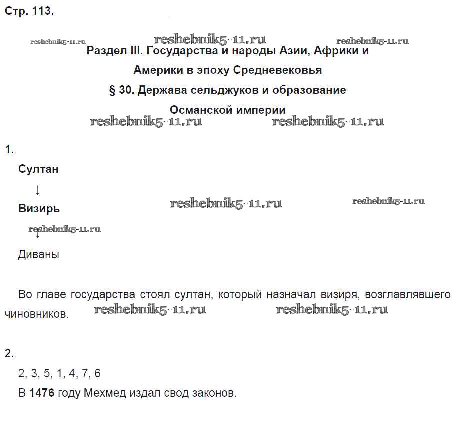 Готовая домашняя работа с ответами по Истории за 6 класс Баранов Рабочая тетрадь Алгоритм успеха Вентана-граф 2017 ФГОС - Страницы 113