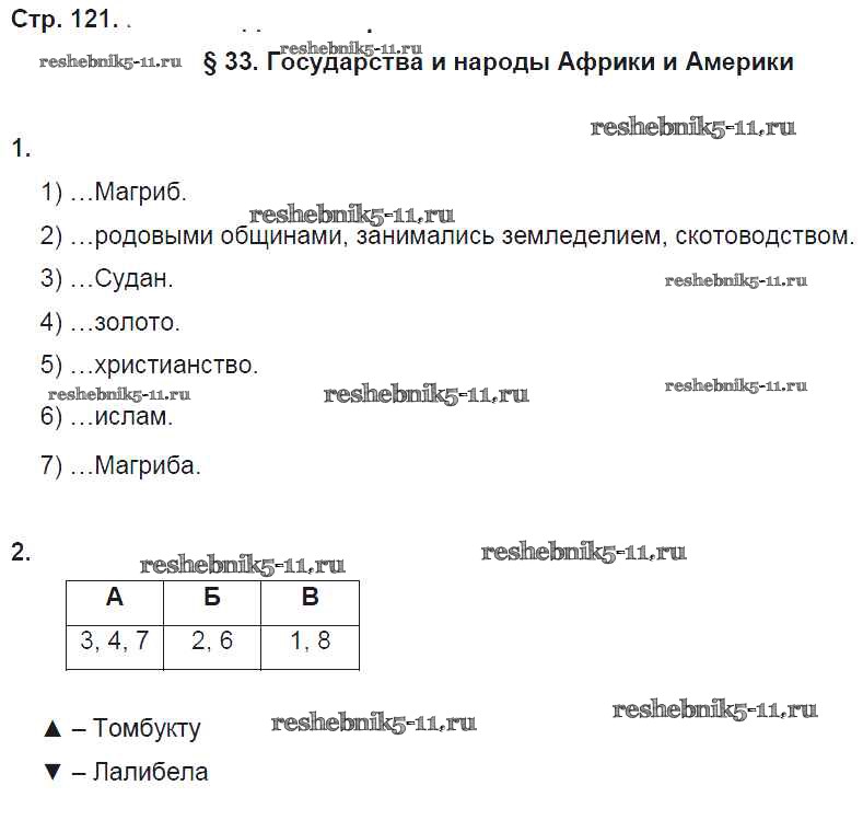 Готовая домашняя работа с ответами по Истории за 6 класс Баранов Рабочая тетрадь Алгоритм успеха Вентана-граф 2017 ФГОС - Страницы 121
