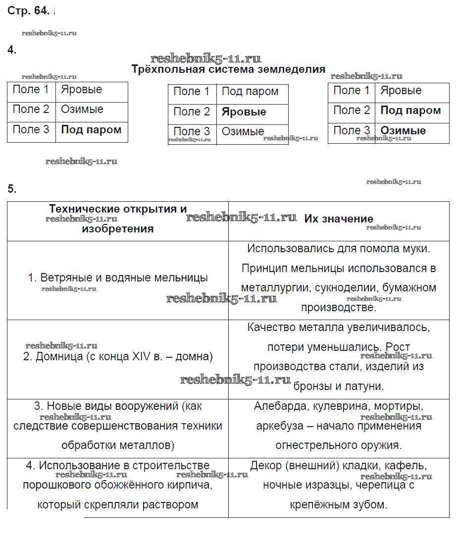 Готовая домашняя работа с ответами по Истории за 6 класс Баранов Рабочая тетрадь Алгоритм успеха Вентана-граф 2017 ФГОС - Страницы 64