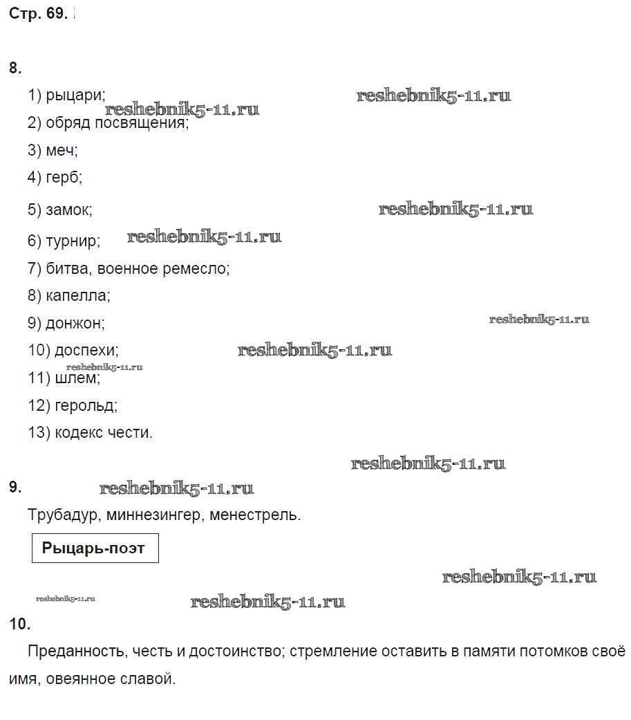 Готовая домашняя работа с ответами по Истории за 6 класс Баранов Рабочая тетрадь Алгоритм успеха Вентана-граф 2017 ФГОС - Страницы 69