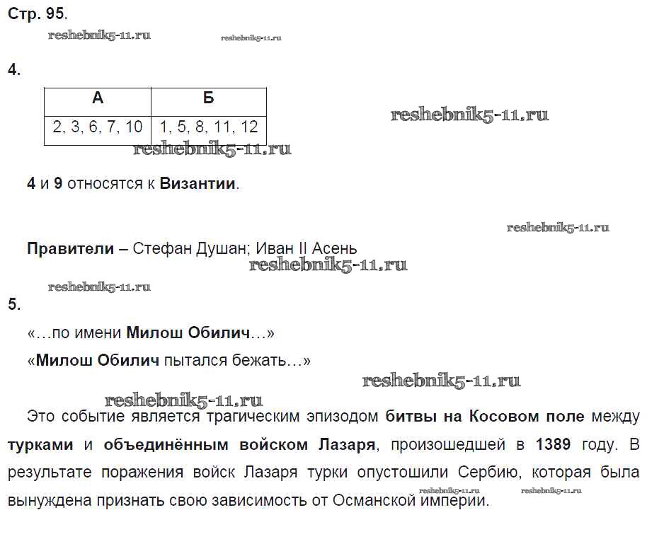 Готовая домашняя работа с ответами по Истории за 6 класс Баранов Рабочая тетрадь Алгоритм успеха Вентана-граф 2017 ФГОС - Страницы 95