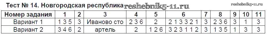 Готовая домашняя работа с ответами по Истории за 6 класс Воробьёва Тесты УМК Часть 1, 2 Экзамен 2017 ФГОС - Тесты Тест №14. Новгородская республика