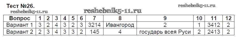 Готовая домашняя работа с ответами по Истории за 6 класс Воробьёва Тесты УМК Часть 1, 2 Экзамен 2017 ФГОС - Тесты Тест №26