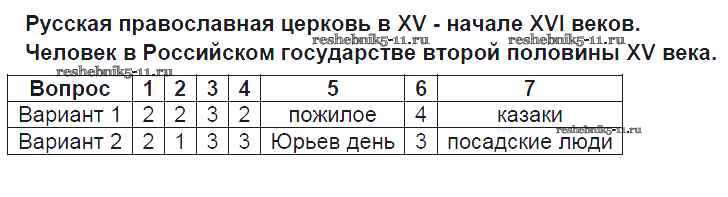 Готовая домашняя работа с ответами по Истории за 6 класс Воробьёва Тесты УМК Часть 1, 2 Экзамен 2017 ФГОС - Тесты Тест №28. Русская православная церковь в XV - начале XVI в. Человек в Российском государстве второй половины XV в.