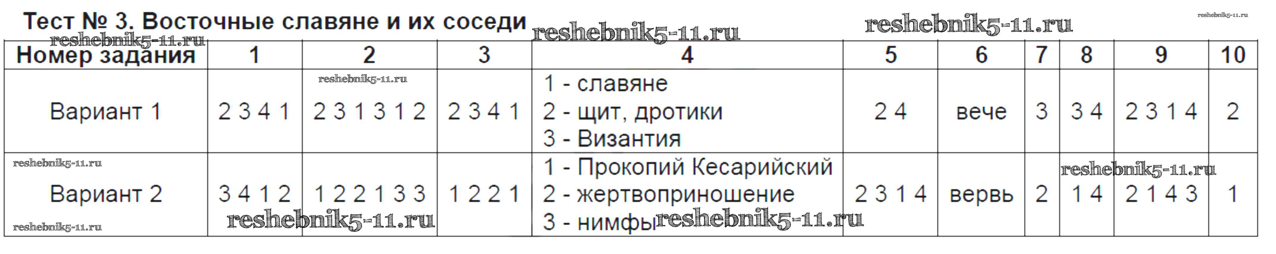 Готовая домашняя работа с ответами по Истории за 6 класс Воробьёва Тесты УМК Часть 1, 2 Экзамен 2017 ФГОС - Тесты Тест №3. Восточные славяне и их соседи