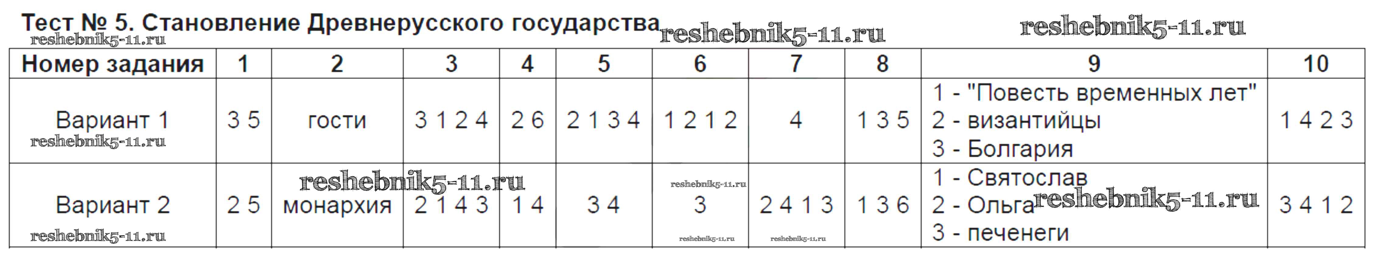 Готовая домашняя работа с ответами по Истории за 6 класс Воробьёва Тесты УМК Часть 1, 2 Экзамен 2017 ФГОС - Тесты Тест №5. Становление Древнерусского государства