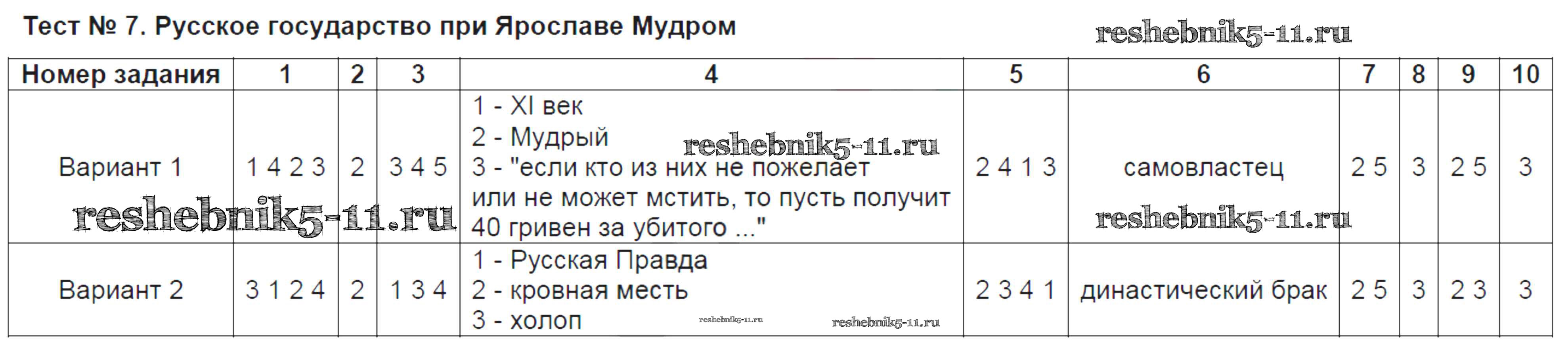 Готовая домашняя работа с ответами по Истории за 6 класс Воробьёва Тесты УМК Часть 1, 2 Экзамен 2017 ФГОС - Тесты Тест №7. Русское государство при Ярославе Мудром