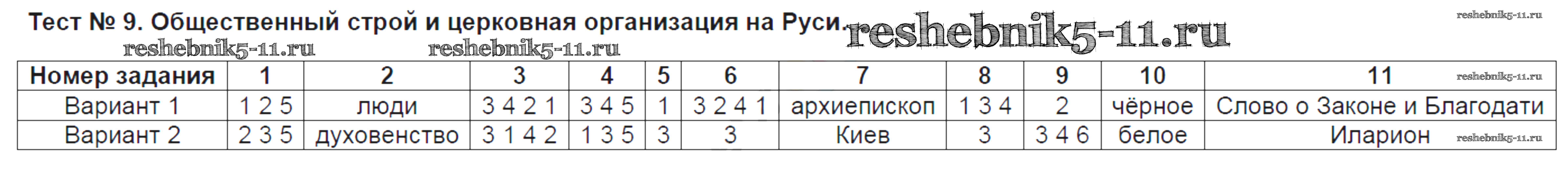 Готовая домашняя работа с ответами по Истории за 6 класс Воробьёва Тесты УМК Часть 1, 2 Экзамен 2017 ФГОС - Тесты Тест №9. Общественный строй и церковная организация на Руси