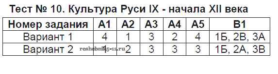 Готовая домашняя работа с ответами по Истории за 6 класс Волкова Контрольно-измерительные материалы (КИМ) ВАКО 2017 ФГОС - Тесты Тест №10. Культура Руси IX - начала XII века