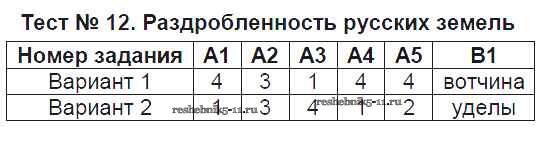 Готовая домашняя работа с ответами по Истории за 6 класс Волкова Контрольно-измерительные материалы (КИМ) ВАКО 2017 ФГОС - Тесты Тест №12. Раздробленность русских земель