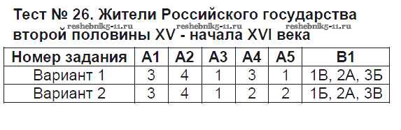 Готовая домашняя работа с ответами по Истории за 6 класс Волкова Контрольно-измерительные материалы (КИМ) ВАКО 2017 ФГОС - Тесты Тест №26. Жители Российского государства второй половины XV - начала XVI века