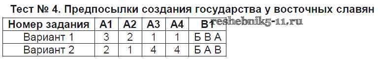 Готовая домашняя работа с ответами по Истории за 6 класс Волкова Контрольно-измерительные материалы (КИМ) ВАКО 2017 ФГОС - Тесты Тест №4. Предпосылки создания государства у восточных славян