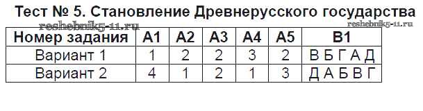 Готовая домашняя работа с ответами по Истории за 6 класс Волкова Контрольно-измерительные материалы (КИМ) ВАКО 2017 ФГОС - Тесты Тест №5. Становление Древнерусского государства