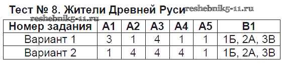 Готовая домашняя работа с ответами по Истории за 6 класс Волкова Контрольно-измерительные материалы (КИМ) ВАКО 2017 ФГОС - Тесты Тест №8. Жители Древней Руси
