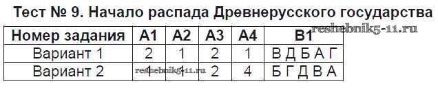 Готовая домашняя работа с ответами по Истории за 6 класс Волкова Контрольно-измерительные материалы (КИМ) ВАКО 2017 ФГОС - Тесты Тест №9. Начало распада Древнерусского государства