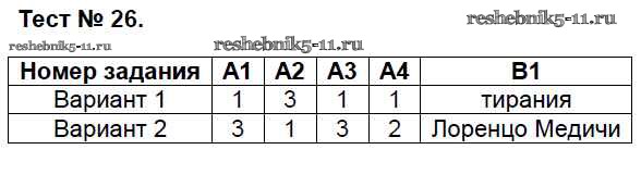 Готовая домашняя работа с ответами по Истории за 6 класс Волкова Контрольно-измерительные материалы (КИМ) ВАКО 2017 ФГОС - Тесты Тест №26