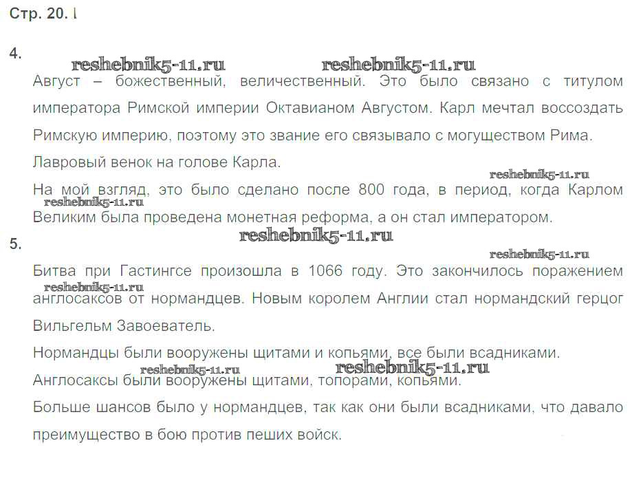 Готовая домашняя работа с ответами по Истории за 6 класс Ведюшкин, Ведюшкина Тетрадь-тренажер Сферы Просвещение 2017 ФГОС - Рождение Средневекового мира стр. 20