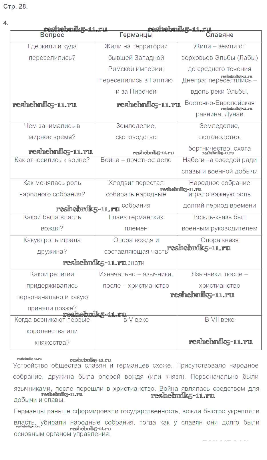Готовая домашняя работа с ответами по Истории за 6 класс Ведюшкин, Ведюшкина Тетрадь-тренажер Сферы Просвещение 2017 ФГОС - Рождение Средневекового мира стр. 28