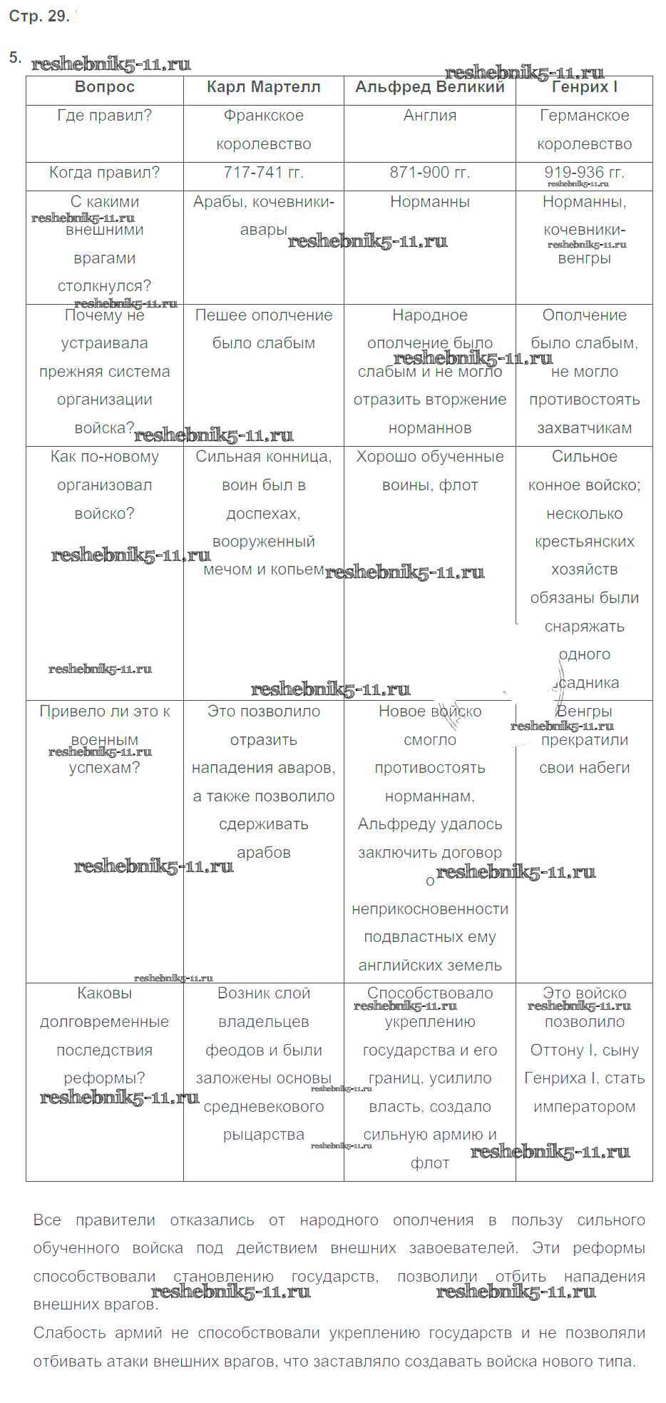 Готовая домашняя работа с ответами по Истории за 6 класс Ведюшкин, Ведюшкина Тетрадь-тренажер Сферы Просвещение 2017 ФГОС - Рождение Средневекового мира стр. 29