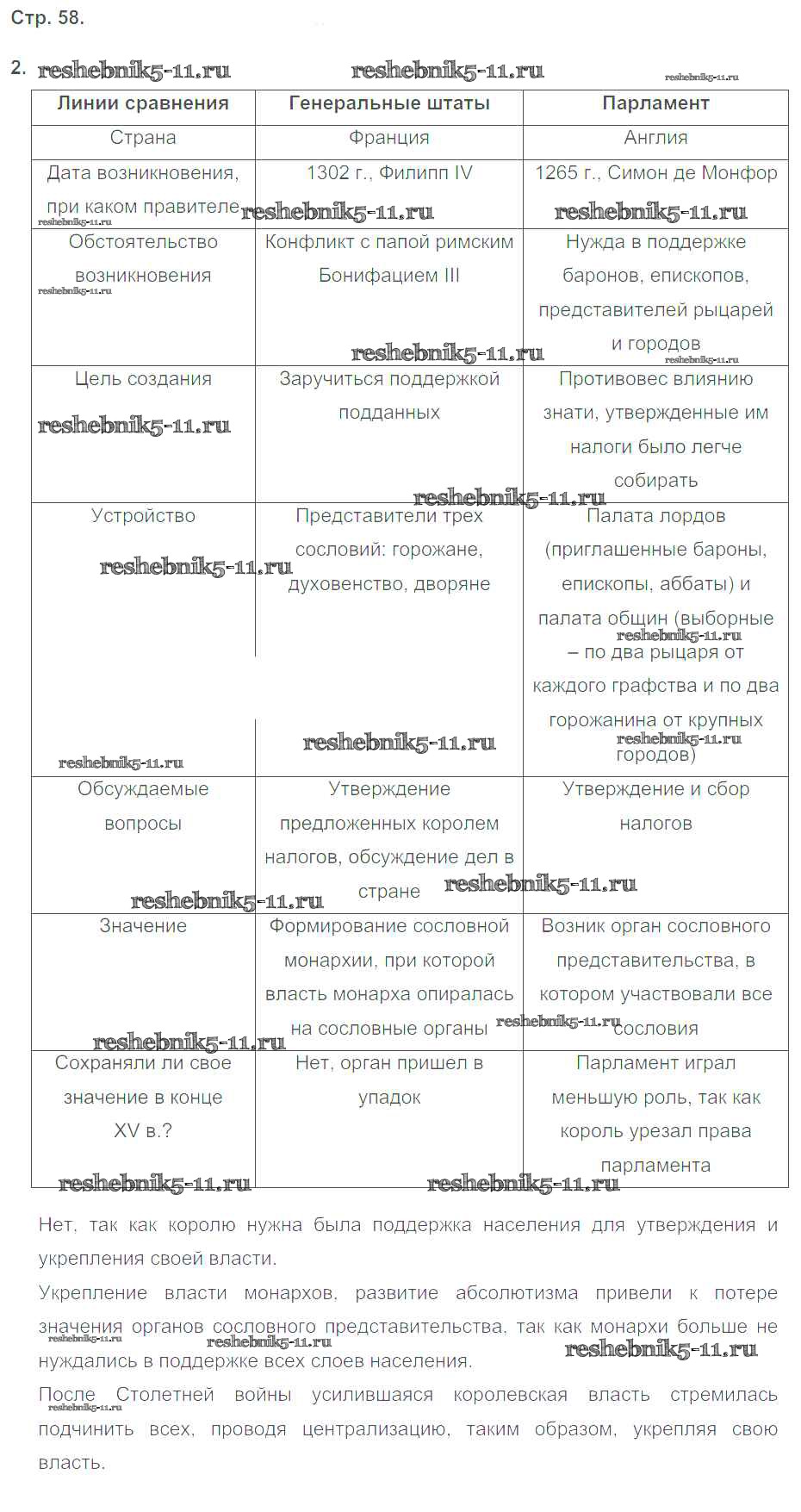 Готовая домашняя работа с ответами по Истории за 6 класс Ведюшкин, Ведюшкина Тетрадь-тренажер Сферы Просвещение 2017 ФГОС - Подъем Средневековой Европы стр. 58