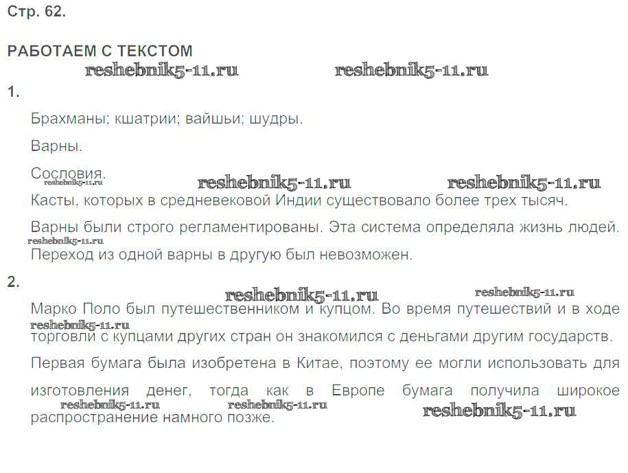 Готовая домашняя работа с ответами по Истории за 6 класс Ведюшкин, Ведюшкина Тетрадь-тренажер Сферы Просвещение 2017 ФГОС - Многоликое Средневековье стр. 62