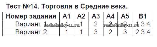 Готовая домашняя работа с ответами по Истории за 6 класс Чернова Контрольно-измерительные материалы (КИМ) Экзамен 2015 ФГОС - Тесты Тест №14. Торговля в Средние века