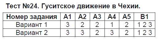 Готовая домашняя работа с ответами по Истории за 6 класс Чернова Контрольно-измерительные материалы (КИМ) Экзамен 2015 ФГОС - Тесты Тест №24. Гуситское движение в Чехии