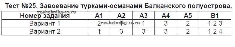 Готовая домашняя работа с ответами по Истории за 6 класс Чернова Контрольно-измерительные материалы (КИМ) Экзамен 2015 ФГОС - Тесты Тест №25. Завоевание турками-османами Балканского полуострова