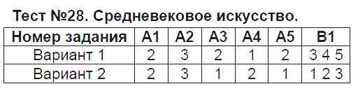Готовая домашняя работа с ответами по Истории за 6 класс Чернова Контрольно-измерительные материалы (КИМ) Экзамен 2015 ФГОС - Тесты Тест №28. Средневековое искусство