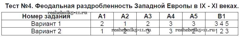 Готовая домашняя работа с ответами по Истории за 6 класс Чернова Контрольно-измерительные материалы (КИМ) Экзамен 2015 ФГОС - Тесты Тест №4. Феодальная раздробленность Западной Европы в IX - XI веках