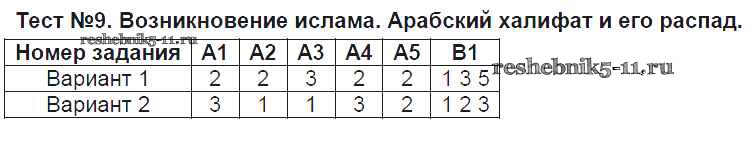 Решебник / тест / тест №9. Возникновение ислама. Арабский халифат и его распад