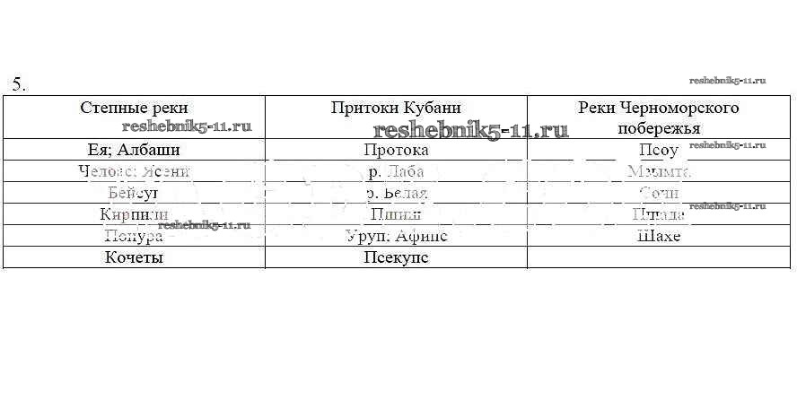 Готовая домашняя работа с ответами по Кубановедению за 6 класс Близнюк Рабочая тетрадь Перспективы образования 2019 - 3. Особенности природы Кубани и своей местности 5