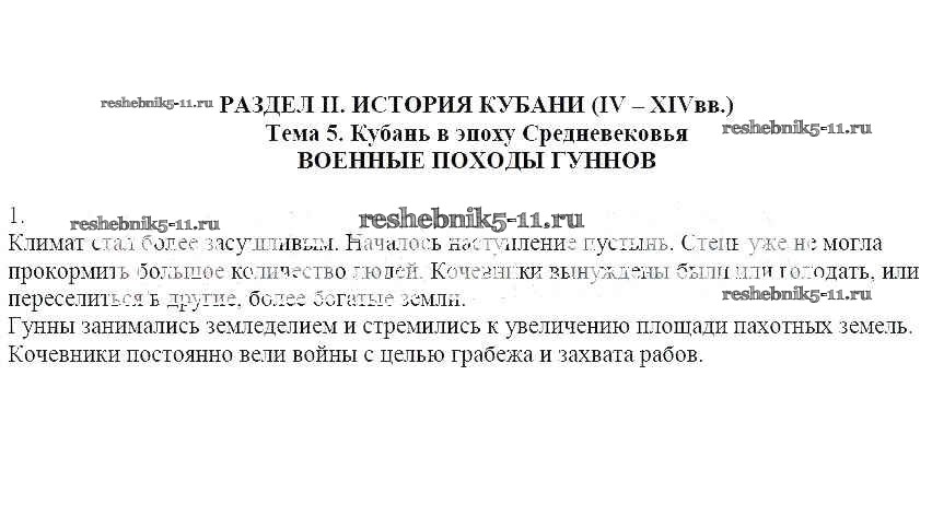 Готовая домашняя работа с ответами по Кубановедению за 6 класс Близнюк Рабочая тетрадь Перспективы образования 2019 - 10. Военные походы гуннов 1