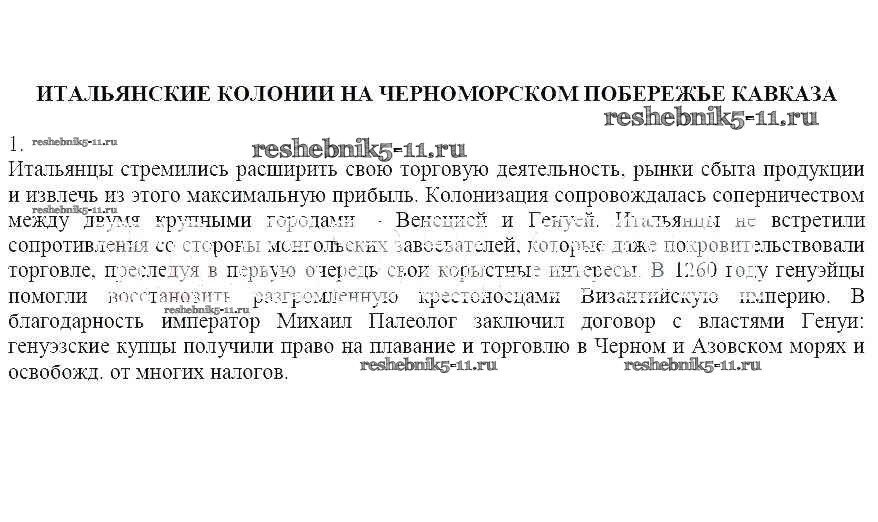Готовая домашняя работа с ответами по Кубановедению за 6 класс Близнюк Рабочая тетрадь Перспективы образования 2019 - 16. Итальянские колонии на черноморском побережье Кавказа 1