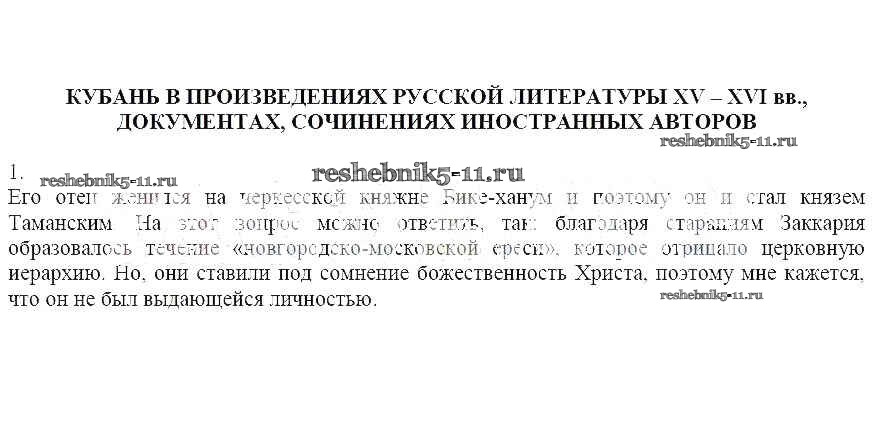 Готовая домашняя работа с ответами по Кубановедению за 6 класс Близнюк Рабочая тетрадь Перспективы образования 2019 - 27. Кубань в произведениях русской литературы XV – XVI вв., документах, сочинениях иностранных авторов 1