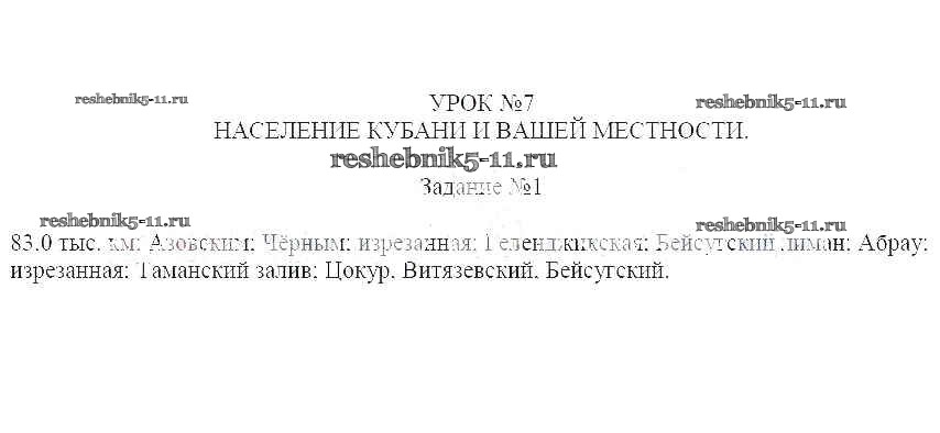 Готовая домашняя работа с ответами по Кубановедению за 6 класс Голикова, Морозова, Прядущенко Рабочая тетрадь Традиция 2019 ФГОС - Урок № 7. Население Кубани и вашей местности 1