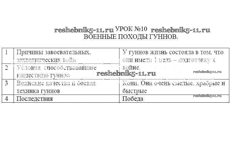 Готовая домашняя работа с ответами по Кубановедению за 6 класс Голикова, Морозова, Прядущенко Рабочая тетрадь Традиция 2019 ФГОС - Урок № 10. Военные походы гуннов 1