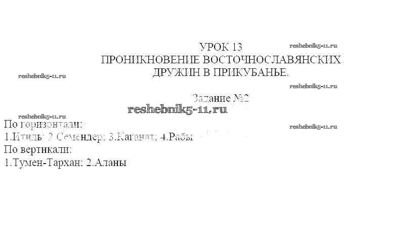Готовая домашняя работа с ответами по Кубановедению за 6 класс Голикова, Морозова, Прядущенко Рабочая тетрадь Традиция 2019 ФГОС - Урок № 13. Проникновение восточнославянских дружин в Прикубанье 2