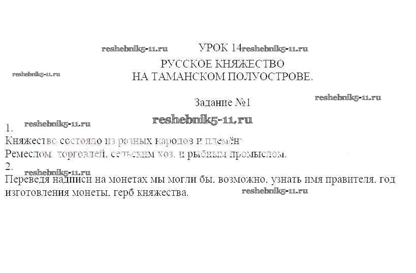 Готовая домашняя работа с ответами по Кубановедению за 6 класс Голикова, Морозова, Прядущенко Рабочая тетрадь Традиция 2019 ФГОС - Урок № 14. Русское княжество на Таманском полуострове 1