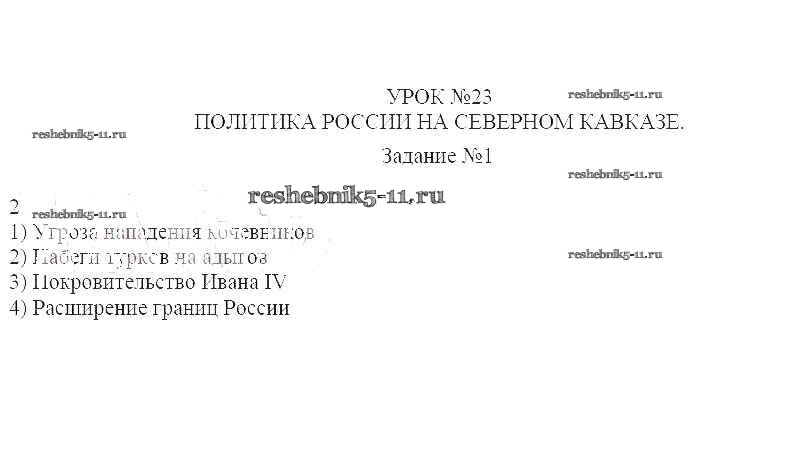 Готовая домашняя работа с ответами по Кубановедению за 6 класс Голикова, Морозова, Прядущенко Рабочая тетрадь Традиция 2019 ФГОС - Урок № 23. Политика России на Северном Кавказе 1